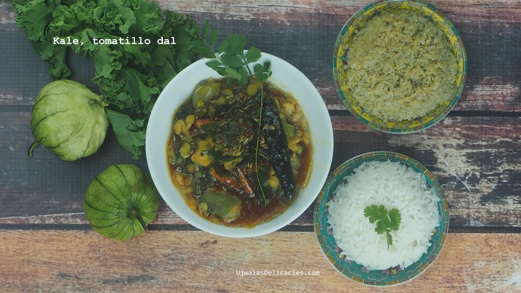 Recipe by Ujwala's Delicacies at https://www.ujwalasdelicacies.com/kale-tomatillo-toor-dal-lentils/